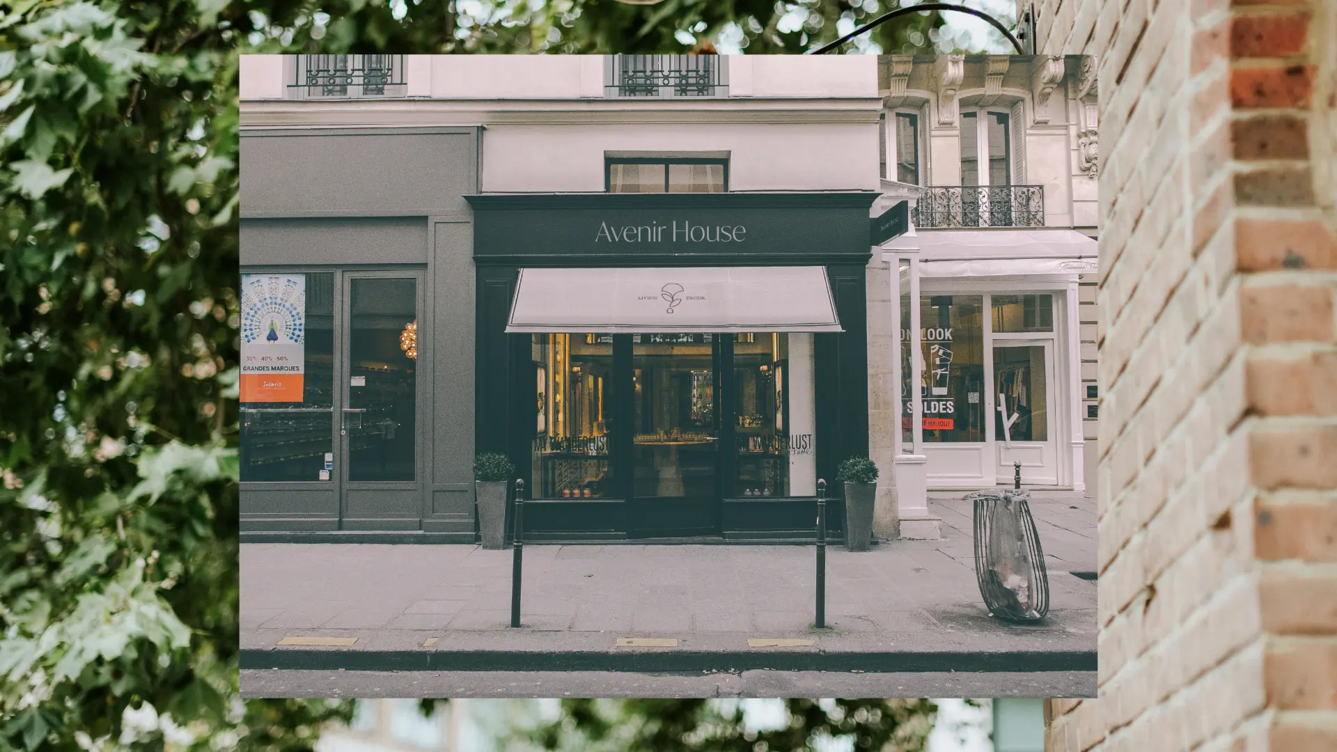 To design Avenir House, we developed a rich storytelling brand that bridges traditional craftsmanship with modern Art Deco elegance. Inspired by the brand's name—"future" in French—we crafted a logo featuring a deco-style flower pointing North to symbolize a forward-looking home. The resulting identity blends a "craft but modern" feel to evoke warm, inviting environments.