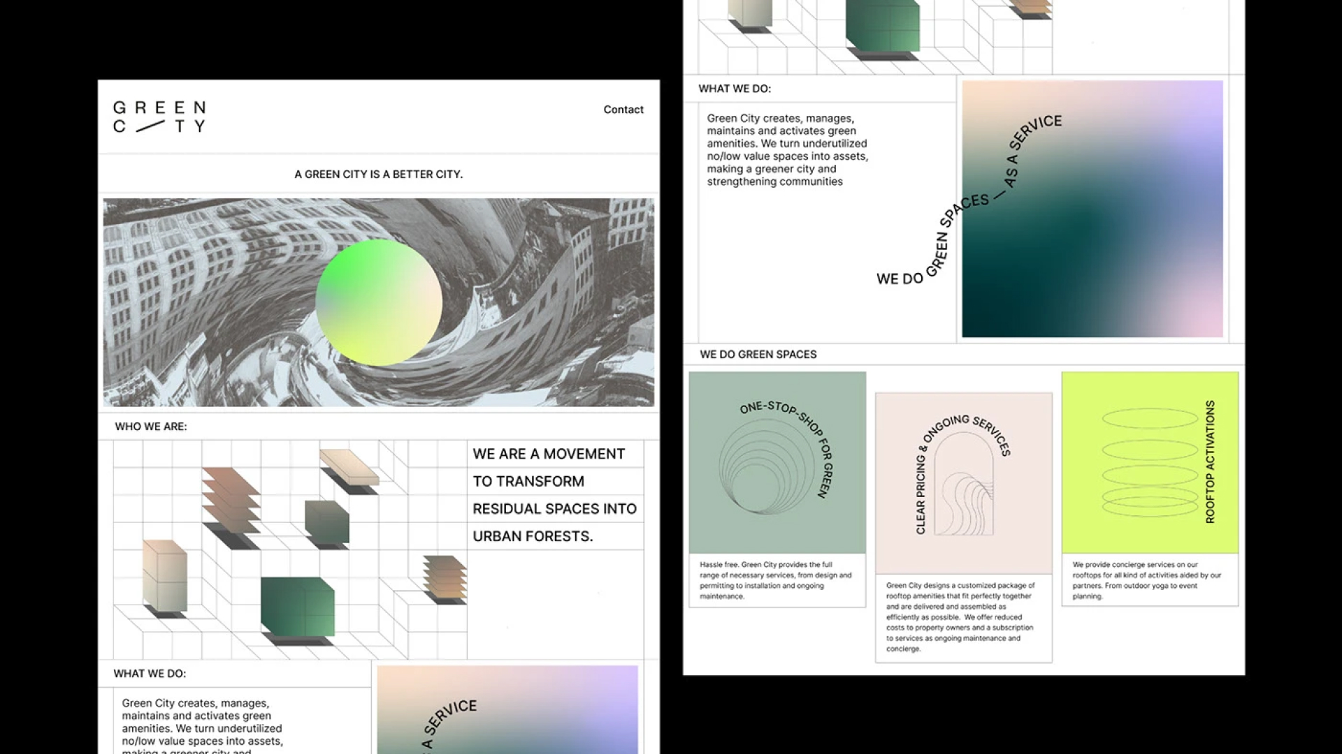 Our design centers on two key elements: structured grids that define city blocks and fluid gradients that represent the metamorphosis of concrete into green spaces. This contrast highlights the brand’s mission to repurpose underutilized rooftop square footage for a better, greener New York City.